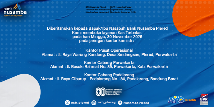 Bank Nusamba Plered membuka layanan kas terbatas pada jaringan kantor kami di :